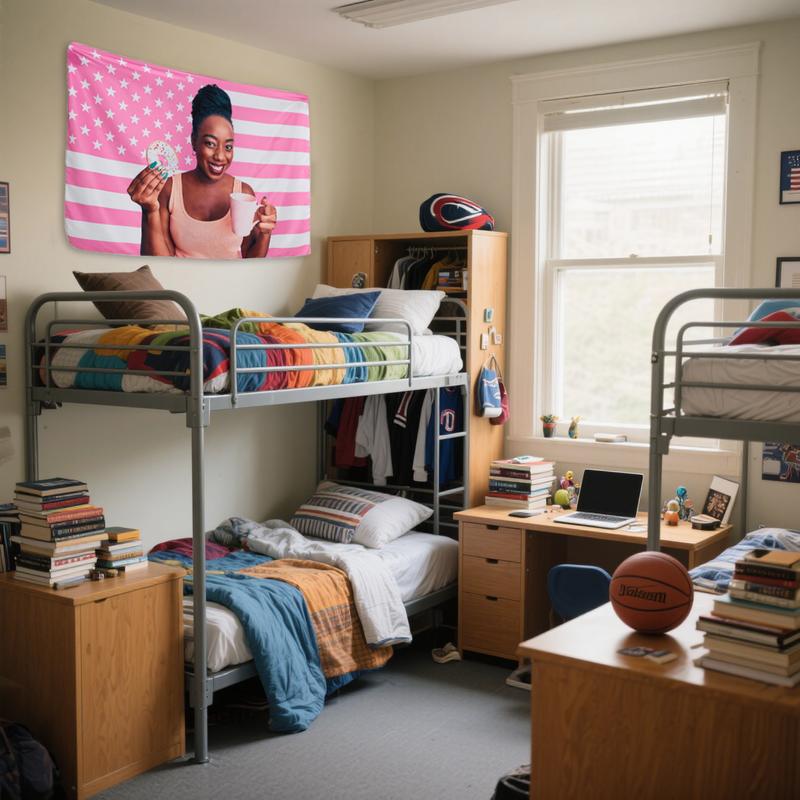 Make a bold statement with our Personalized Pink America Flag Whether it’s your homeland’s flag, a fusion of multicultural symbols, or a vintage-inspired national emblem, we weave your vision into a stunning textile masterpiece. Add any photo and any text to create a totally unique design that's perfect for gifts, dorm rooms, parties, or just showing off your personality.